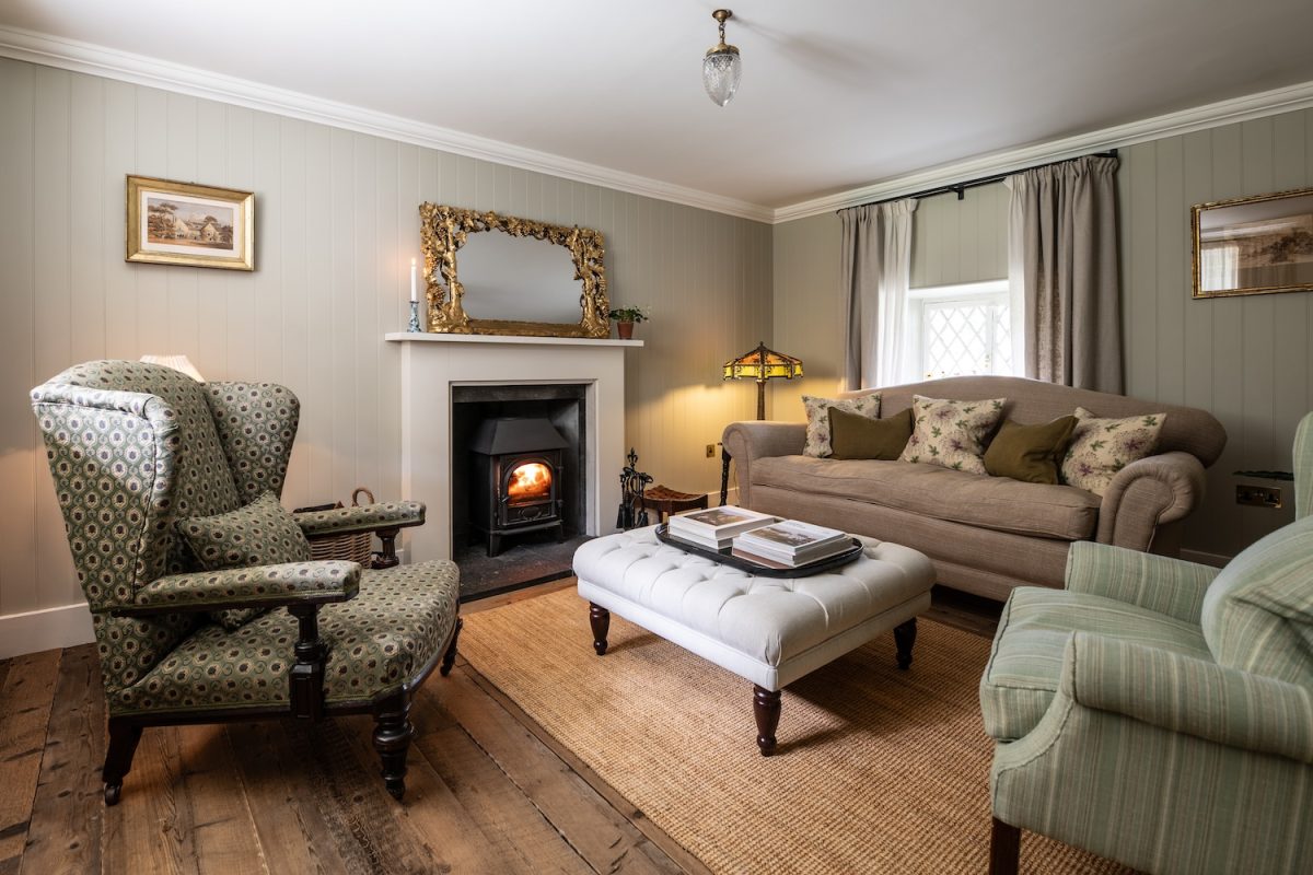 Garden Cottage sleeps 6 guests across three double bedrooms, one of which can be twinned. The primary bedroom has an ensuite shower room, there is also a family bathroom. There is an open plan kitchen and dining room, with separate sitting room. Both rooms have log burning stoves. Outdoors there is private garden with outdoor furniture.