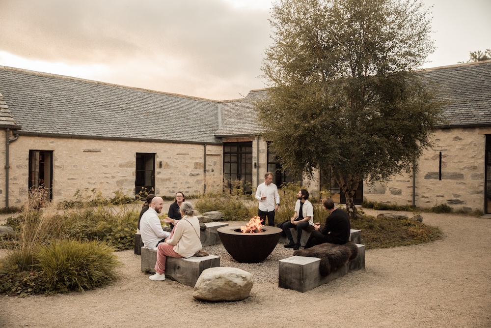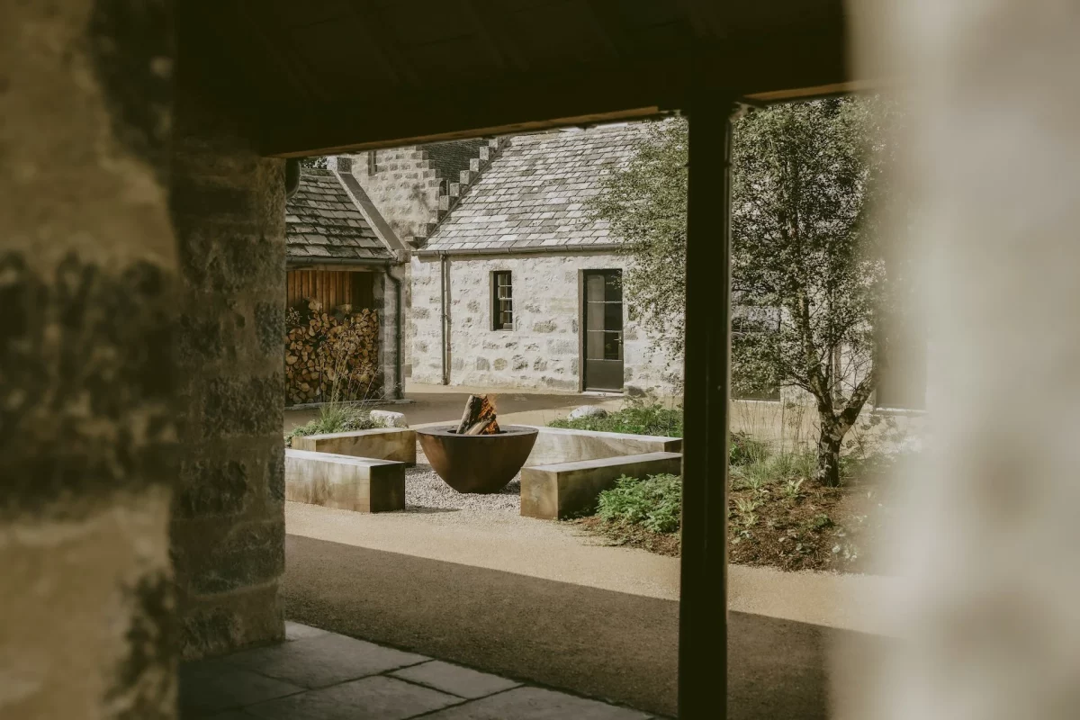 Set amongst native birch and woodland flowers, a statement iron Feuerring fire pit takes centre-stage of the original steadings. The Feuerring serves as central gathering point to come together and enjoy seasonal cocktails before dinner, or make the most of the afternoon sun with a good book.