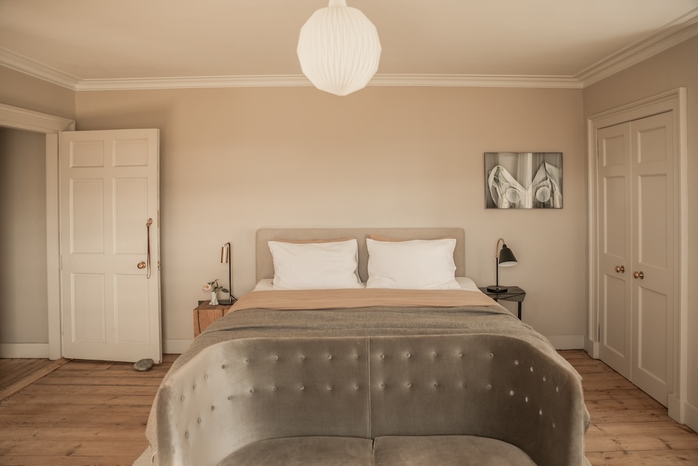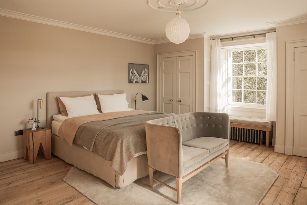 Carefully-restored original details anchor the house in a feeling of timeless Scottish tradition. The addition of iconic Scandinavian design pieces brings a modern take on the manse’s heritage, creating a harmonious marriage of Scandinavian and Scottish creative talent. Work from eminent Danish artists such as Trine Søndergaard and Peter Blonde sit alongside bespoke furniture and cabinetry from Scottish makers.