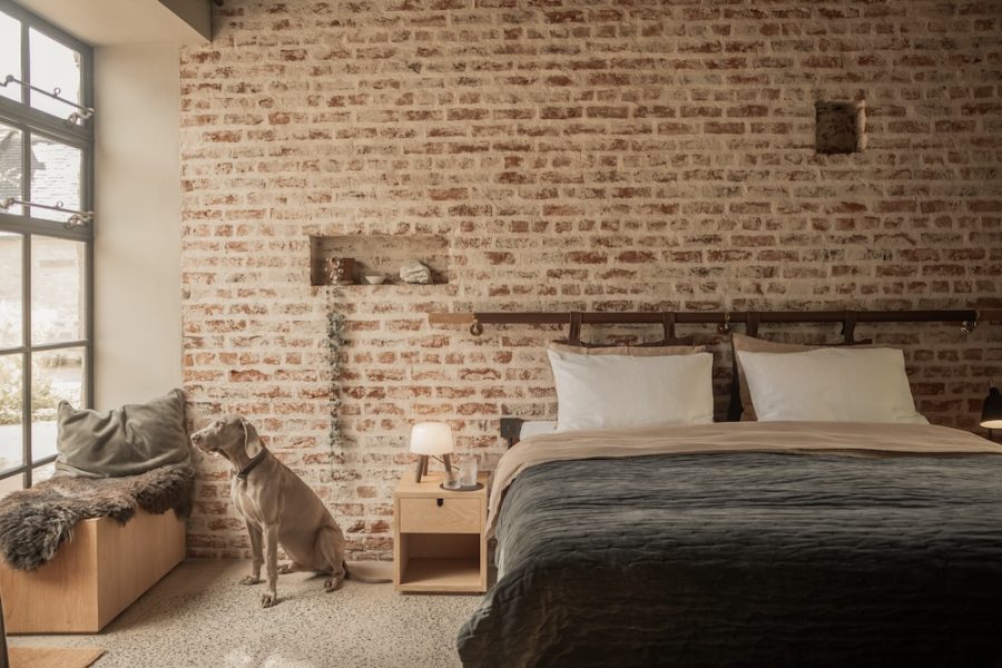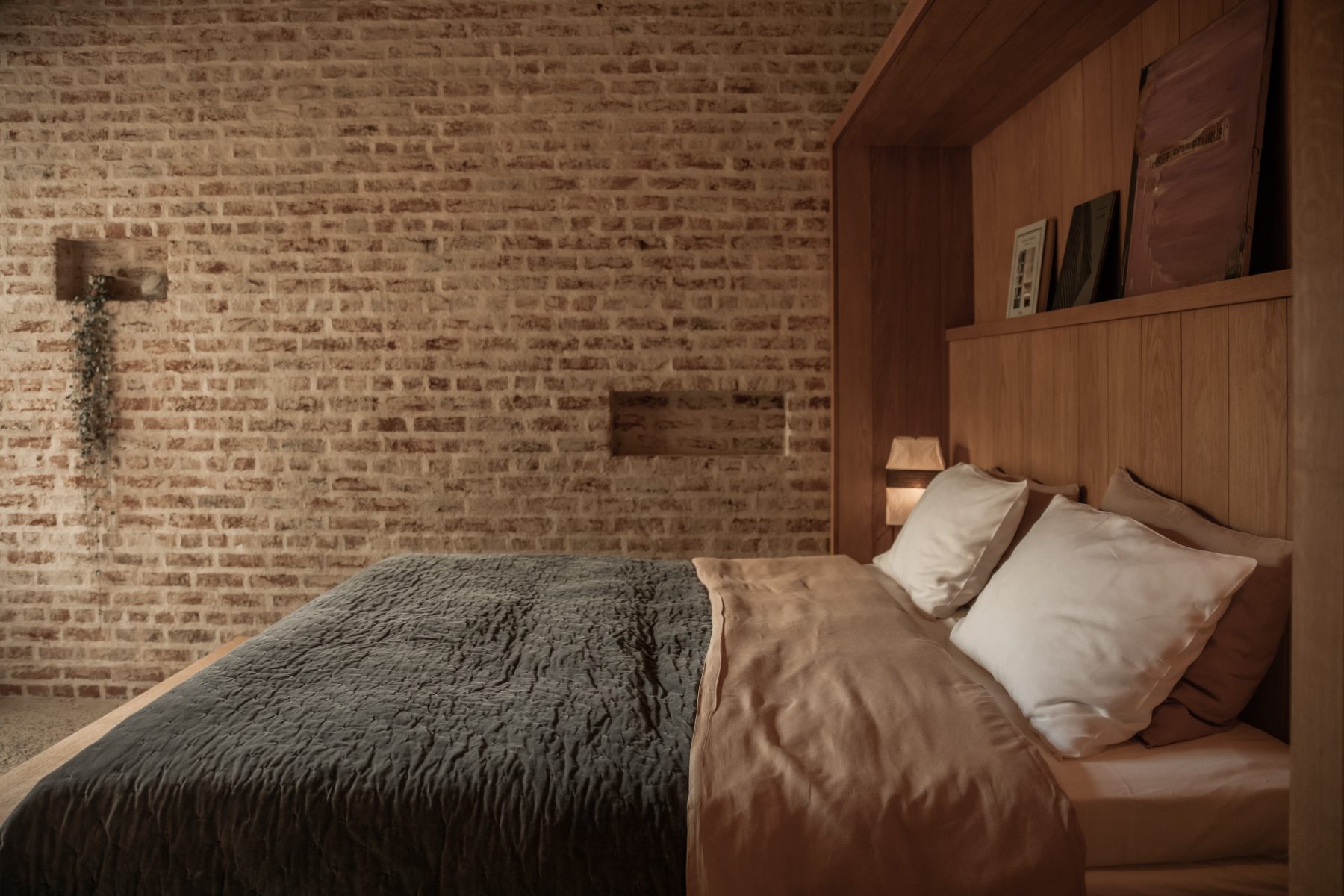 Exposed brick work in warm rust tones meets the seamless lines of oak walls, celebrating the beauty of simplicity. Modernist Crittal windows allow light to stream in from the courtyard outside, but are softened by heavy wool curtains. Double-height ceilings add spaciousness, making the studios ideal for working or practicing yoga during your stay. Heated polished concrete floors add that feeling of warmth and comfort throughout.